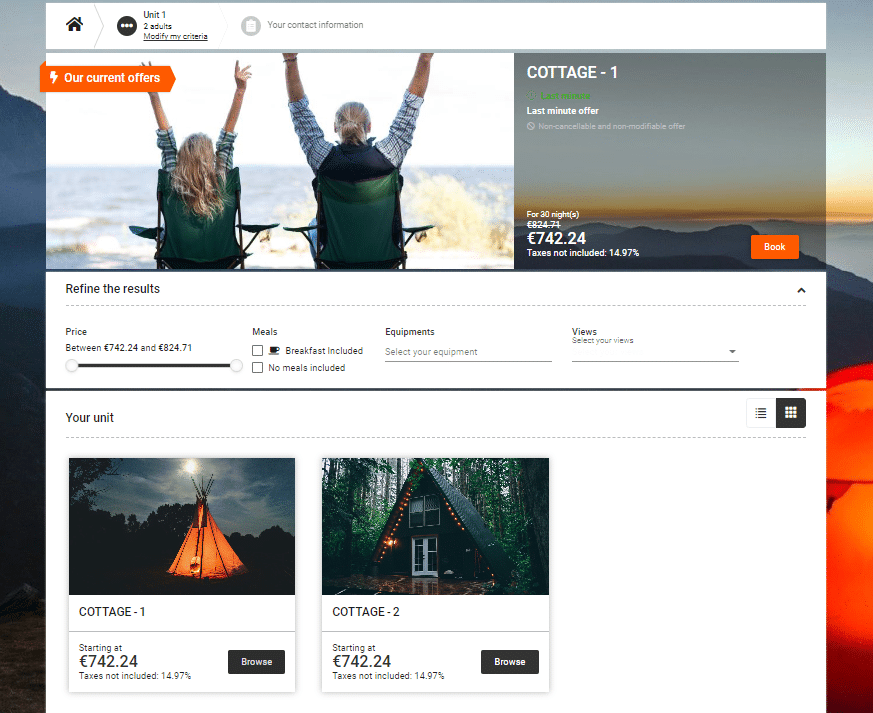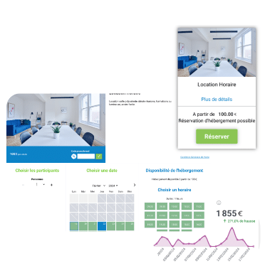 - Personnalisation du parcours : créez un package (chambre + petit-déjeuner + activité) et contrôlez l’affichage, l’upsell et la montée en panier.