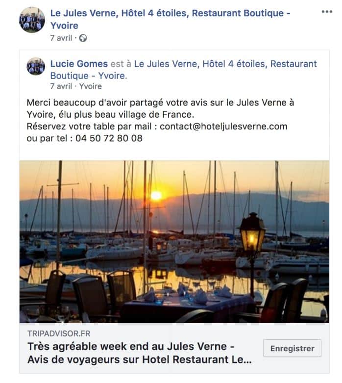 Une jolie photo d’un plat ou de la chambre postée par un client sur un réseau accompagné d’un commentaire élogieux sur votre établissement auront parfois bien plus de retombées qu’un encart que vous auriez payé sur un support papier…